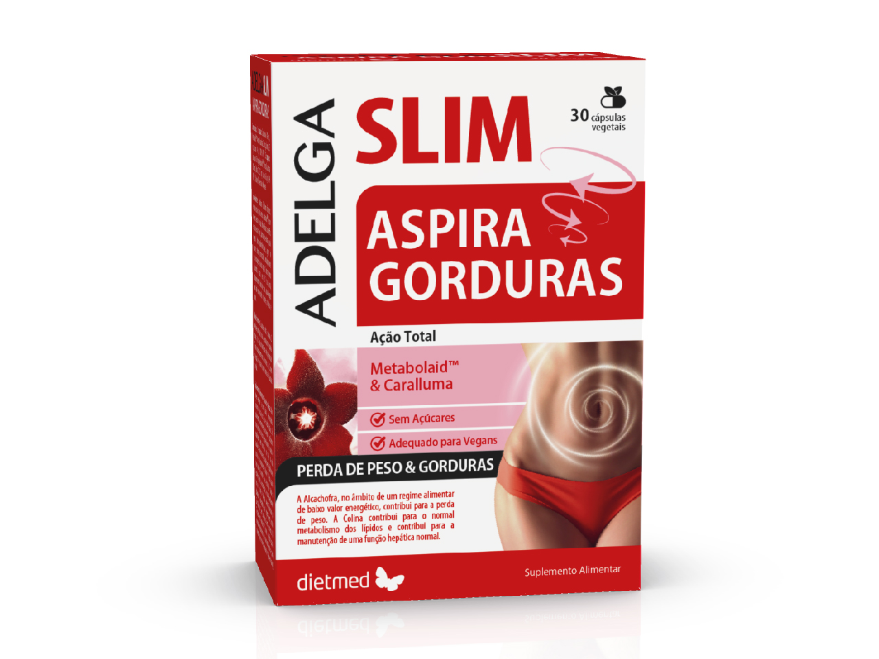 AdelgaSlim Aspira Gorduras 30 caps – Dietmed, é uma fórmula avançada em cápsulas vegetais, livre de açúcares, amido, lactose, glúten, laticínios e fermento. Com ingredientes cuidadosamente selecionados, este suplemento é ideal para quem busca apoio na perda de peso de forma saudável e equilibrada.