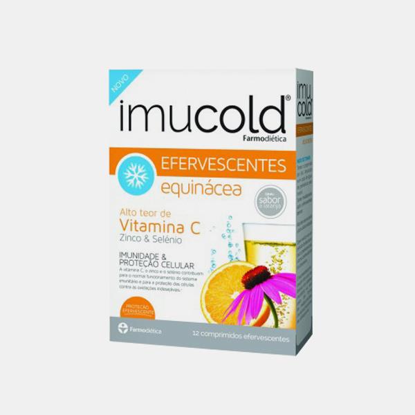 Imucold 12 comprimidos efervescentes é um Suplemento Alimentar com Equinácea,Vitamina C, Zinco e Selénio. A Vitamina C, o Zinco e o Selénio contribuem para o normal funcionamento do sistema imunitário e também para a protecção das células contra as oxidações indesejáveis.