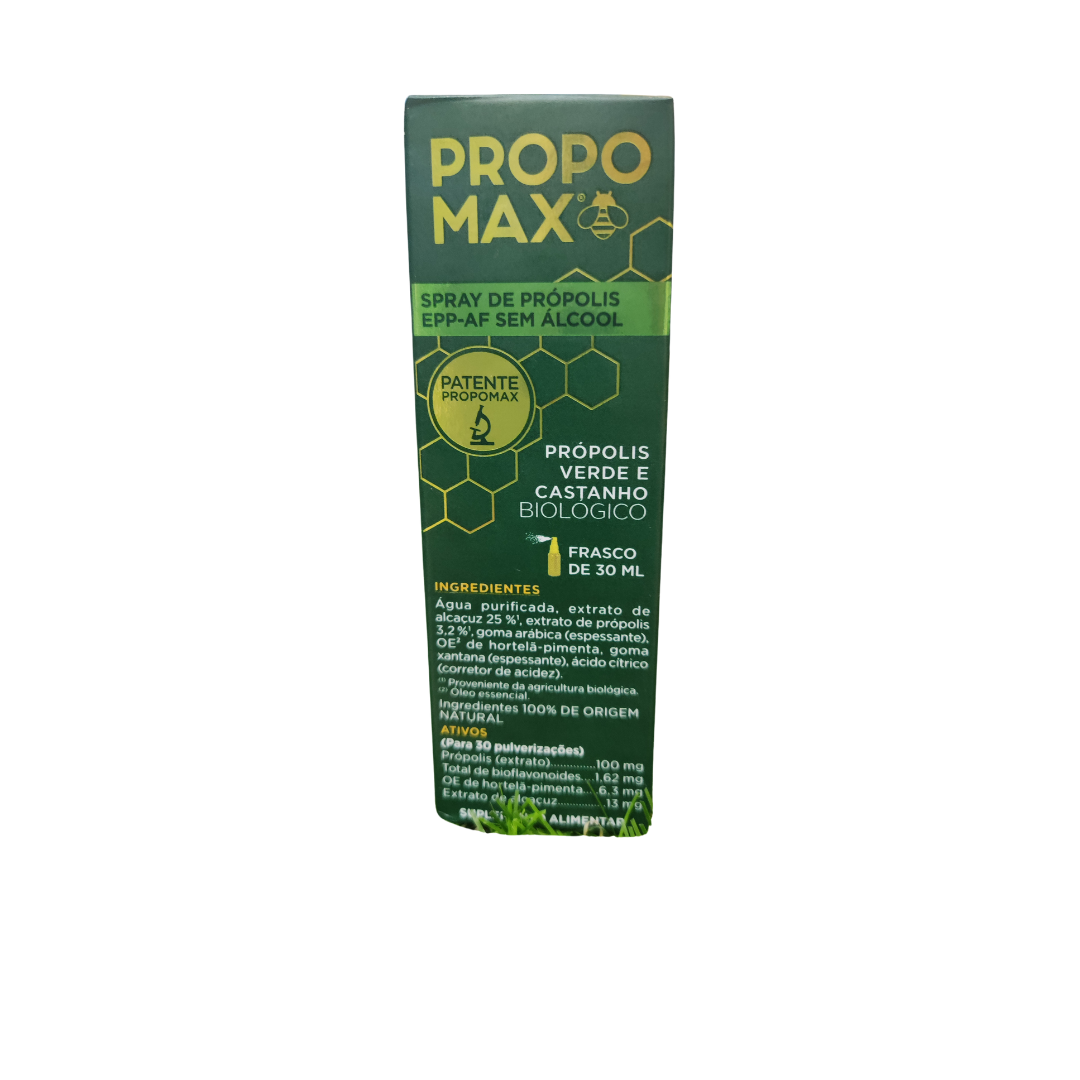 O Propomax spray tem na composição aromas delicados de alcaçuz é utilizado desde a antiguidade como adjuvante no combate às inflamações do sistema respiratório, e hortelã-pimenta um excelente estimulante do corpo e do espírito. O própolis tem um papel anti-bacteriano e amacia a garganta.