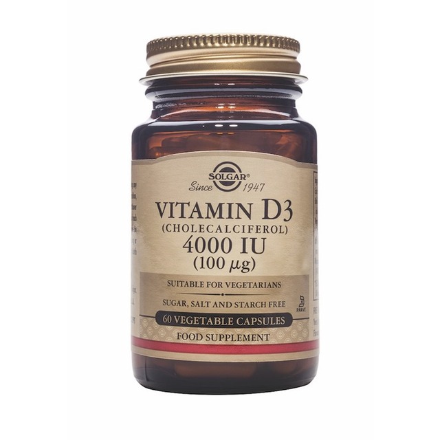 Vitamina D3 (Colecalciferol) 4000UI 100ug - 60 Cápsulas Solgar